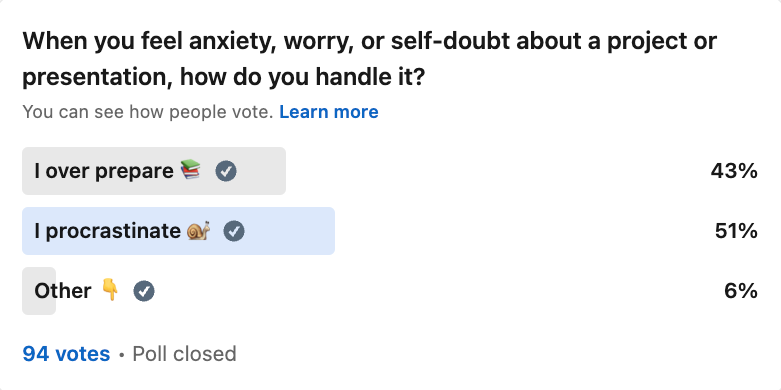 When you feel anxiety, worry, or self-doubt about a project or presentation, how do you handle it?